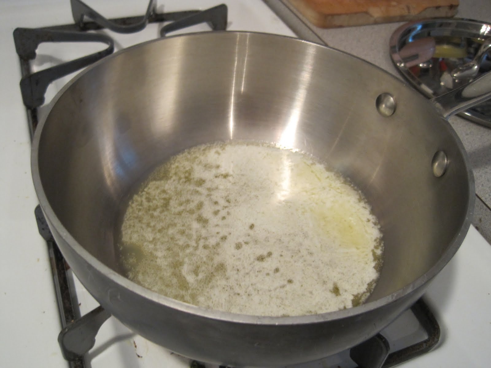1. Make a simple roux by melting butter in a saucepan on medium heat.